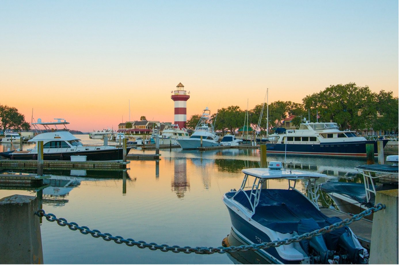 Just beyond the harbor lie peaceful anchorages tucked within Broad Creek and Calibogue Sound. Dropping anchor here allows the first true exhale of the journey. Dolphins arc gracefully beside the hull at sunrise, pelicans glide above the surface, and the tide breathes in and out through golden marsh grass. The beaches of Hilton Head stretch wide and flat, backed by maritime forests and rolling dunes stitched together by sea oats that sway in the Atlantic breeze.