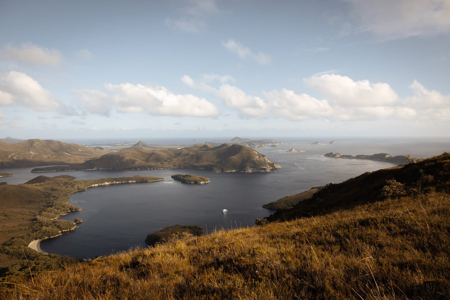 The sheltered waters of the D’Entrecasteaux Channel provide calm cruising, ideal for leisurely exploration, especially when the prevailing westerlies are blowing.