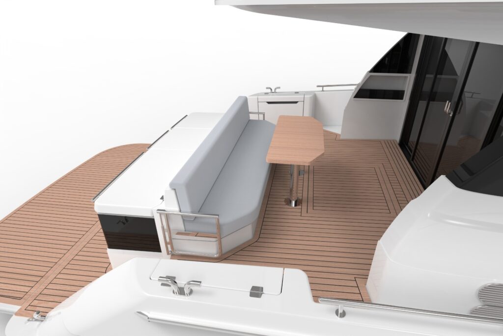 Improved access when moving from the adventure deck to the side decks, along with the squaring off of the rear rope lockers to allow for the inclusion of side boarding gates as an option.