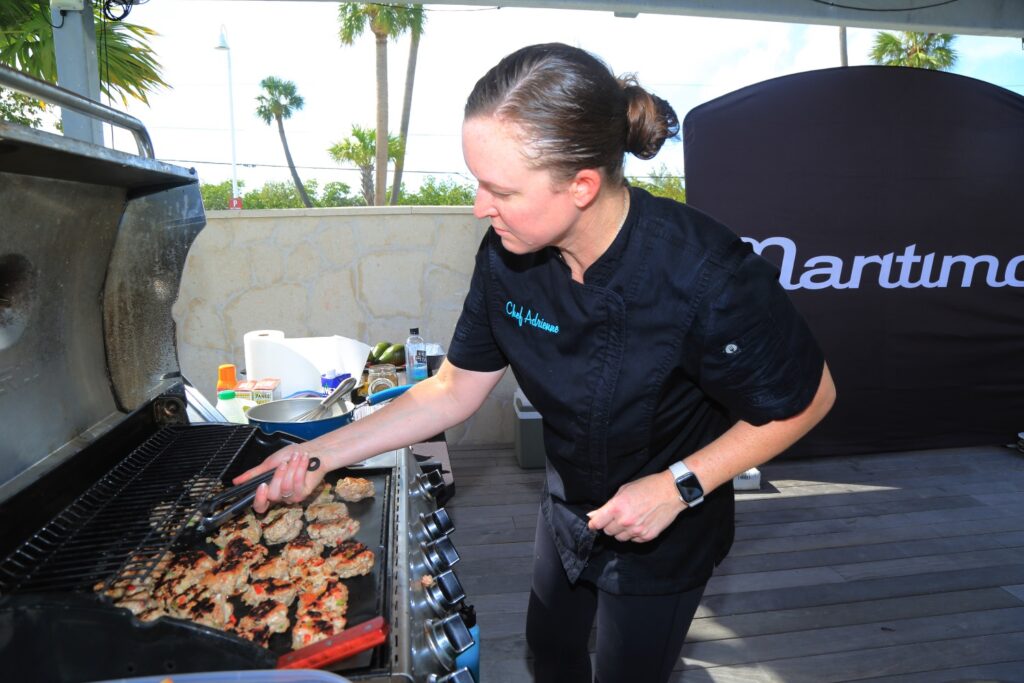 Then it was time for a cooking lesson with Adrienne Gang, who was in the first season of Below Deck. She shared some of her favourite on board recipes and ideas with guests to enjoy on their Maritimo. One of the participants said, “The cooking session was great learning. Adrienne’s tips for on board meals were so useful, and the tasting was absolutely delicious. This event has definitely raised the bar for what a luxury boating event should be!”