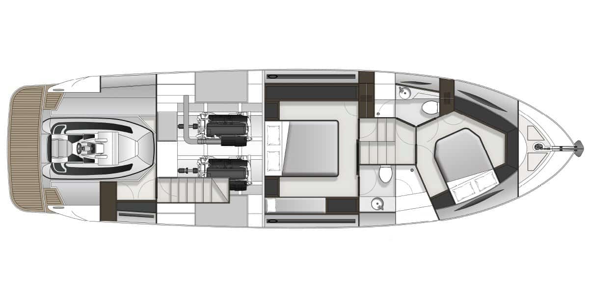 In addition to the trademark X series aft accommodation the new X50 has two large staterooms and ensuites in the forward accommodations.