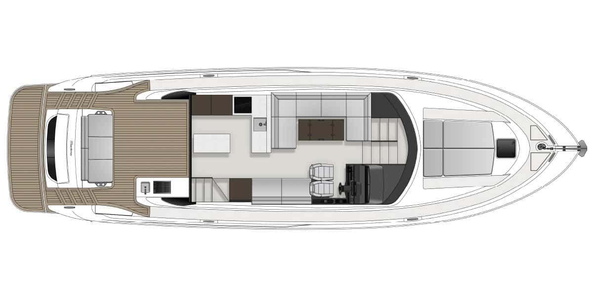 The saloon design incorporates optional three stage sliding vista windows that flank each side of the hard top letting in unprecedented amounts of light and ventilation when needed. An optional sunroof centered over the galley provides the ability to lighten and ventilate the saloon.