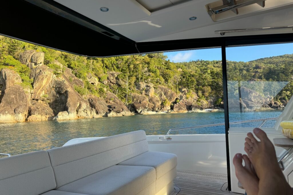 “This is actually our first Maritimo, having come out of a Sport Yacht 6000, which we owned from 2015 to 2020. Overall, it was a terrific boat. I’d had it from new, so I didn’t have any issues, even though the engine room was a bit tight. However, we wanted something a little bigger because, you know, with boats, bigger is more comfortable, and you can access more out-of-the-way places. So, I went to the factory and said, ‘Can you make me one of these 10 or 15 feet bigger?’ They said they had no plans for a larger vessel. But right time, right place—I happened to talk to Maritimo’s Australasian Sales Manager, Ormonde Britton, who coincidentally lives in the same neighborhood as me.”